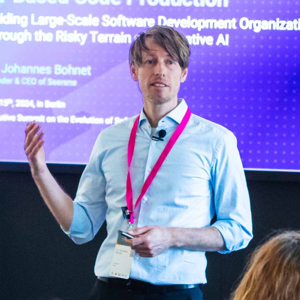 Dr. Johannes Bohnet, CEO of Seerene, speaking on AI-based software development